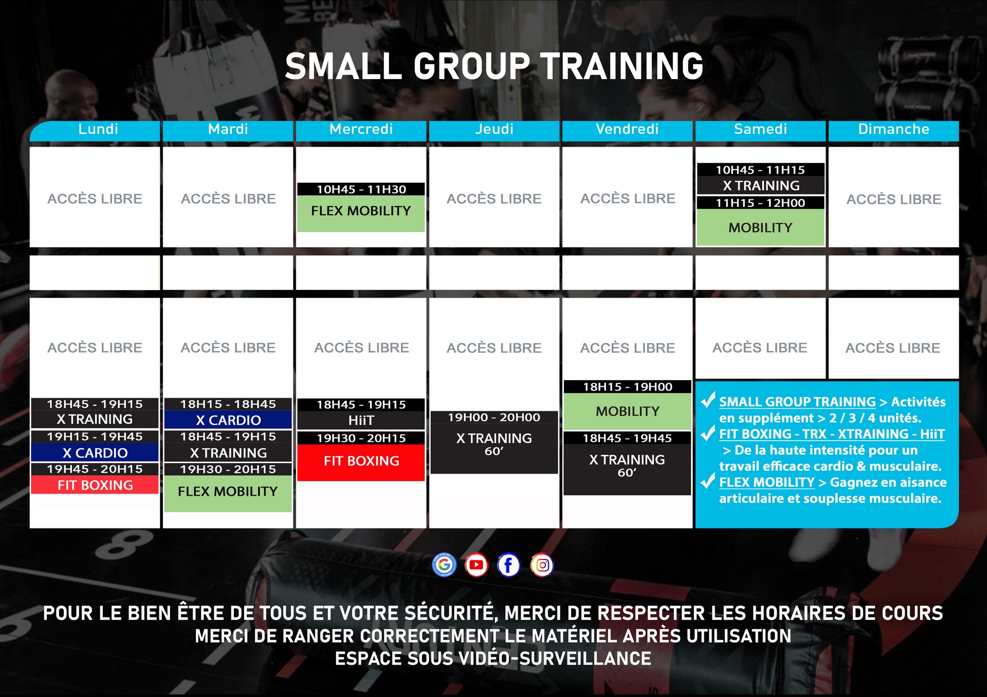 Avec l'application Gratuite, réservez vos cours collectifs et assistez à certaines séances d'entraînement depuis votre mobile.